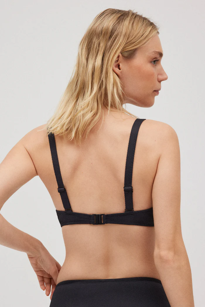 Bikini texture piqué à larges bretelles noires, conçu pour vous offrir confort et style à tout moment. Bonnet C. Avec armature et remplissage. Bretelles réglables, support maximal.